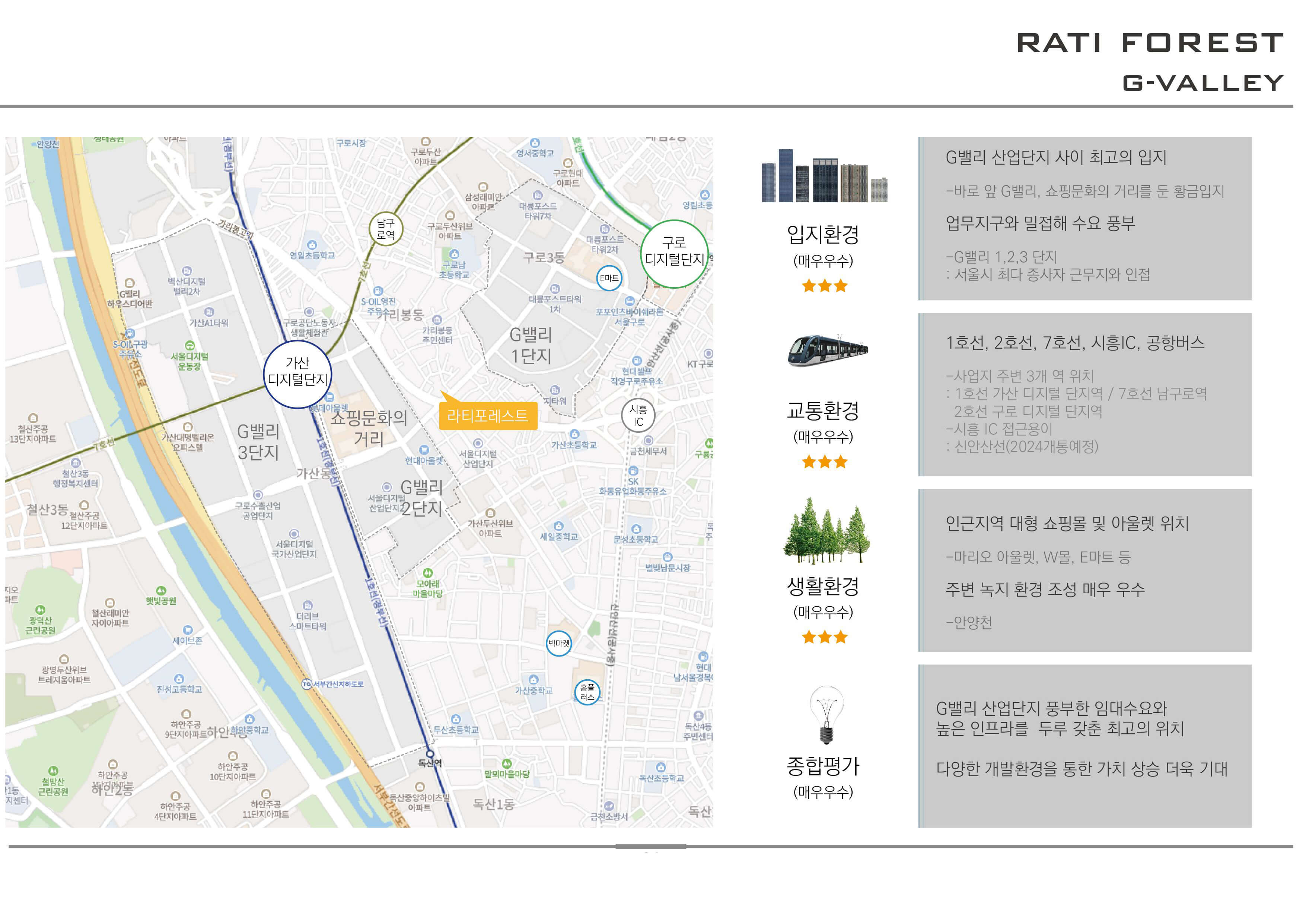 가산 라티포레스트의 가장 큰 장점 중 하나는 G-밸리의 풍부한 배후수요와 생활 인프라를 갖췄다는 점이다.