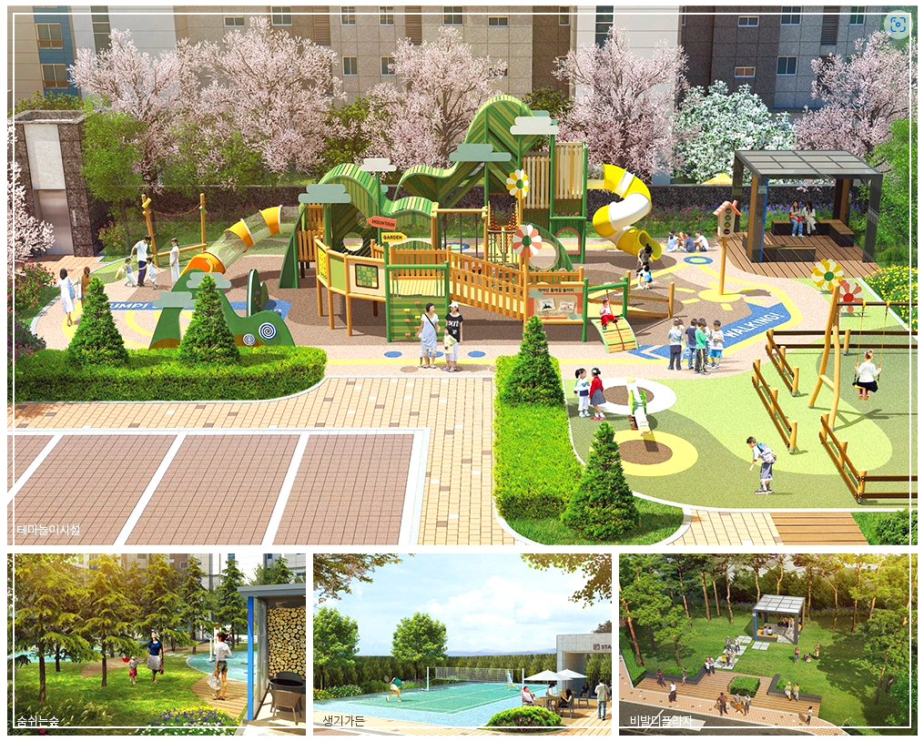 편백나무 살림욕장, 잔디광장, 소나무 숲 쉼터 등 청정한 단지로 완성합니다.