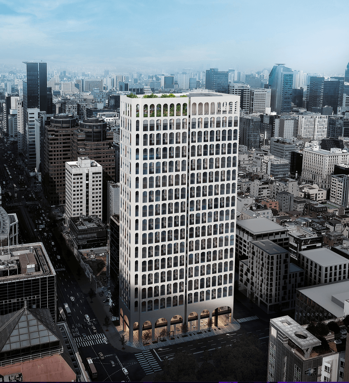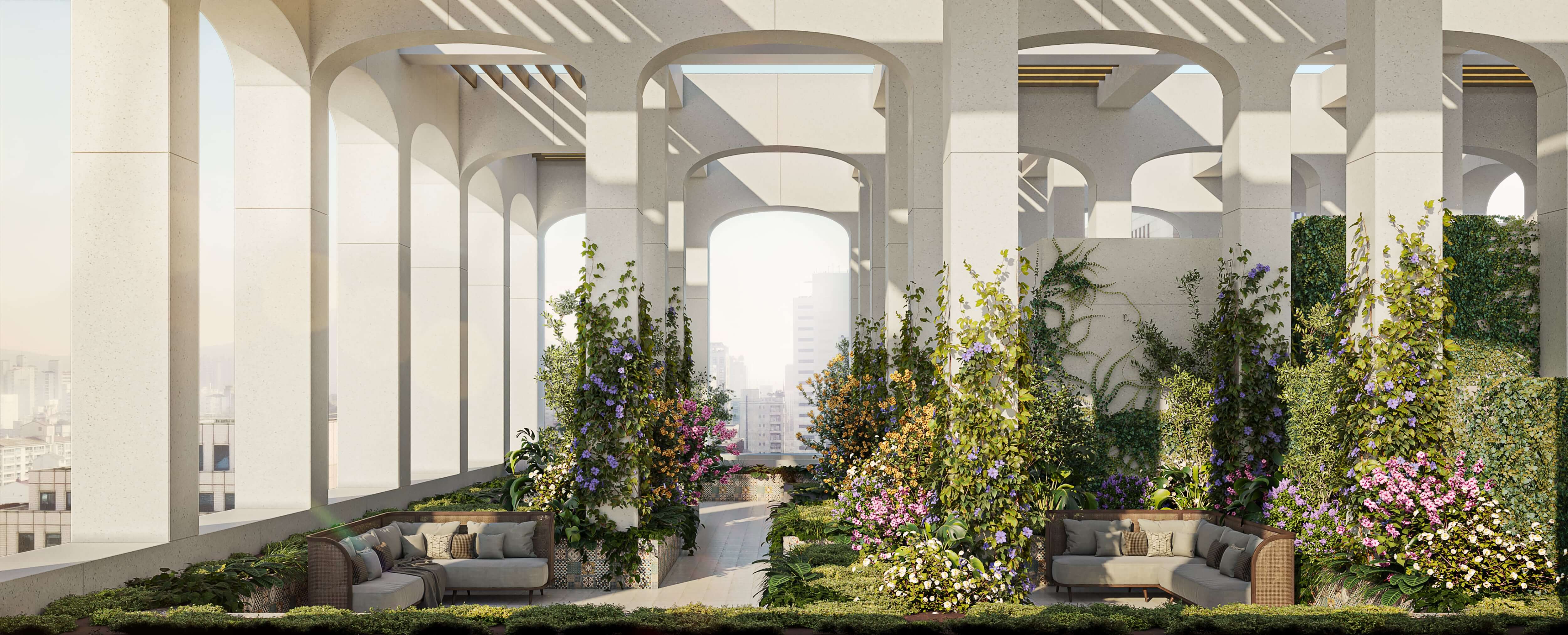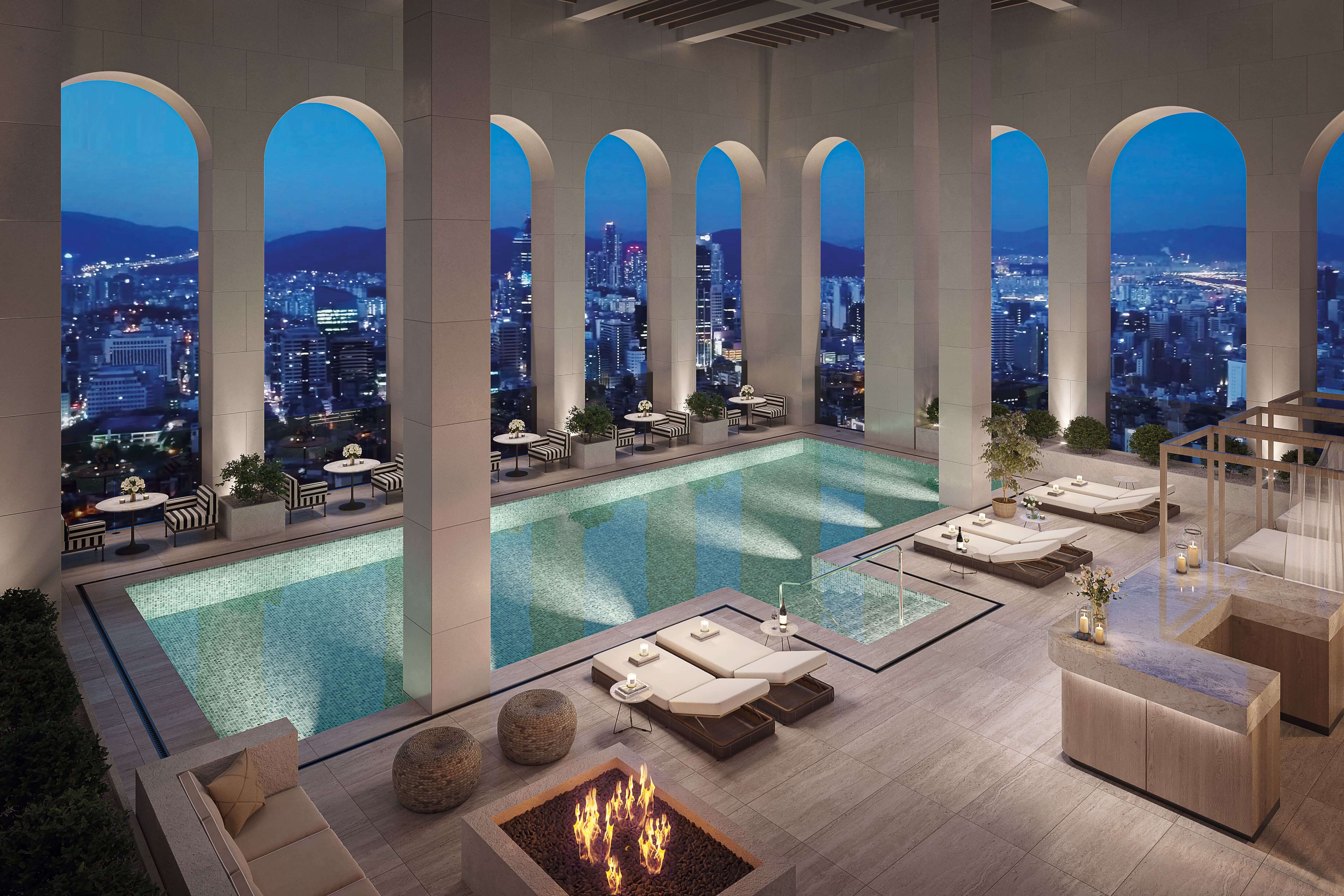강남 도심을 조망하는 7.3m 광폭 창과 시그니처 윈도우시트