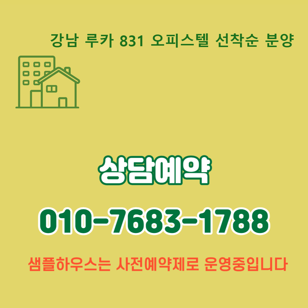 강남역 도보 5분, 더블역세권, 고급 인테리어와 차별화된 설계, 그리고 강남의 미래를 이끄는 개발 호재까지. 루카 831은 그야말로 하이엔드 오피스텔의 정수를 보여주는 대표 프로젝트입니다. 강남 중심 입지에서 삶의 격을 높이고 싶은 실거주자부터, 미래 가치를 선점하려는 투자자까지. 루카831은 모든 니즈를 충족시킬 수 있는 완성형 주거상품입니다.