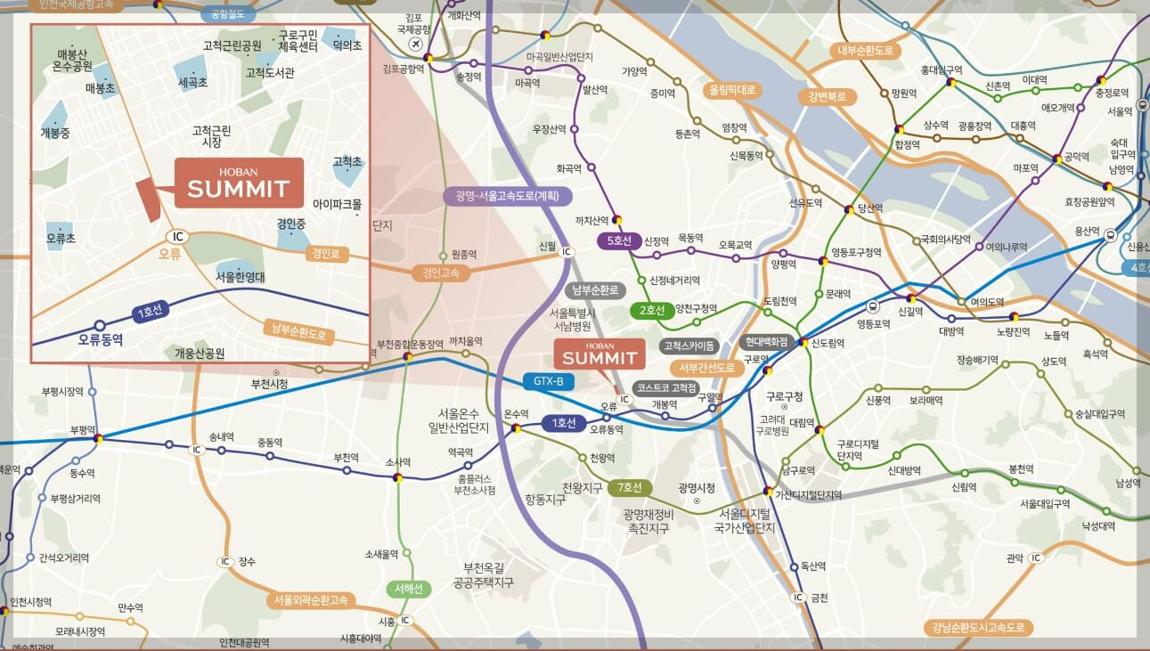 '호반써밋 개봉'은 우수한 교통 접근성 좋으며, 지하철 1호선 오류동역이 도보로 접근 가능하며, 이를 통해 여의도, 용산, 시청, 구로∙가산디지털단지 등 주요 업무지구로의 이동이 30분 이내로 가능합니다. 뿐만 아니라 신 구로선의 추진으로 경기 시흥 대야역부터 서울 목동역까지 연결되는 국가철도망에 포함된 노선이 개통될 예정입니다. 더불어 GTX-B노선 역시 추진 중으로, 수도권 광역급행철도로 인천대입구부터 서울을 거쳐 마석까지 연결될 예정입니다.