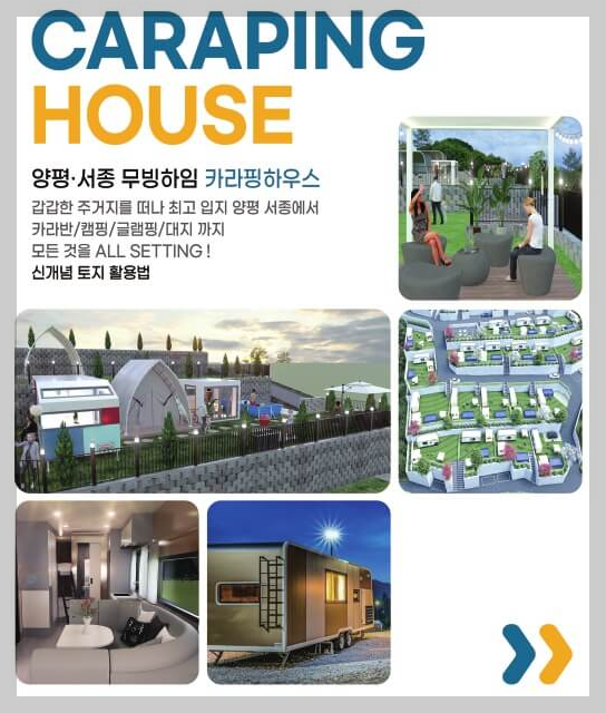 카라핑하우스는 기존의 글램핑과 캠핑의 단점을 보완하고, 오피스텔 같은 편리함을 제공하는 최고급 카라반이 준비되어 있는 새로운 개념의 전원주택입니다. 공영 주차장과 커뮤니티 시설이 계획되어 있어 편리한 생활이 가능하며, 모든 시설이 한 곳에 모여 있어 이용이 편리합니다.