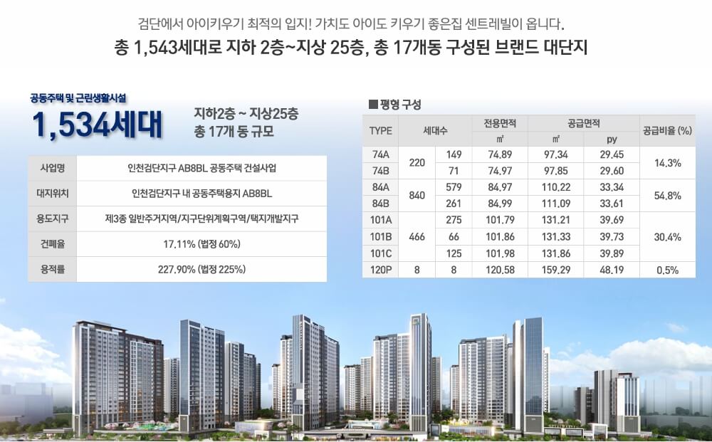 특히 인근에는 인천지방법원 북부지원과 검찰청 북부지청이 포함된 ‘법조타운’ 조성 사업이 추진되고 있어, 향후 지역 행정 중심지로 성장할 가능성이 큽니다. 이와 더불어 상업시설 및 업무지구가 확장되면 직주근접 환경이 완성되어, 거주 만족도는 더욱 높아질 것입니다.