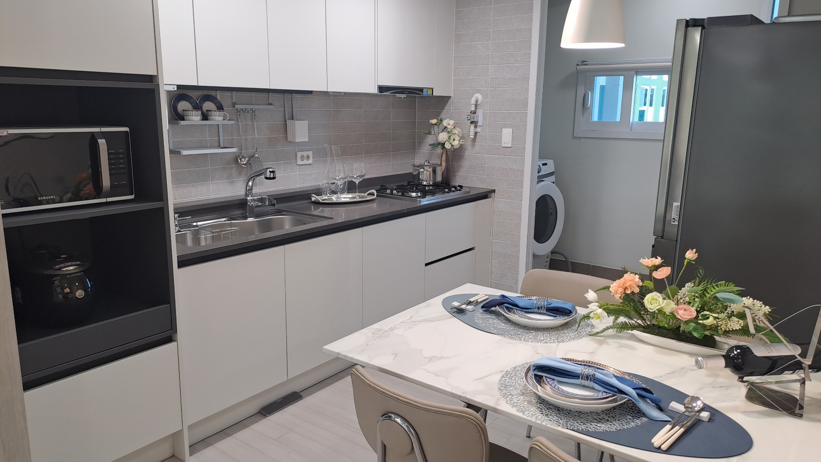 일부 세대에는 TV, 세탁기, 냉장고, 에어컨 등의 가전제품이 이미 세팅되어 있으며, 이를 활용하면 옵션 비용으로 3~4백만원을 절약할 수 있습니다. 또한 추가적인 입주 지원 혜택도 제공됩니다.
