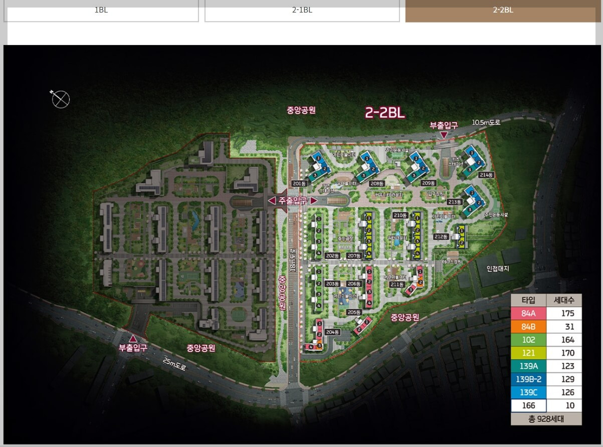 2-2BL: 928세대, 전용 84~166㎡