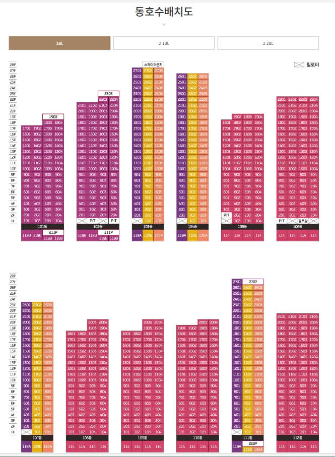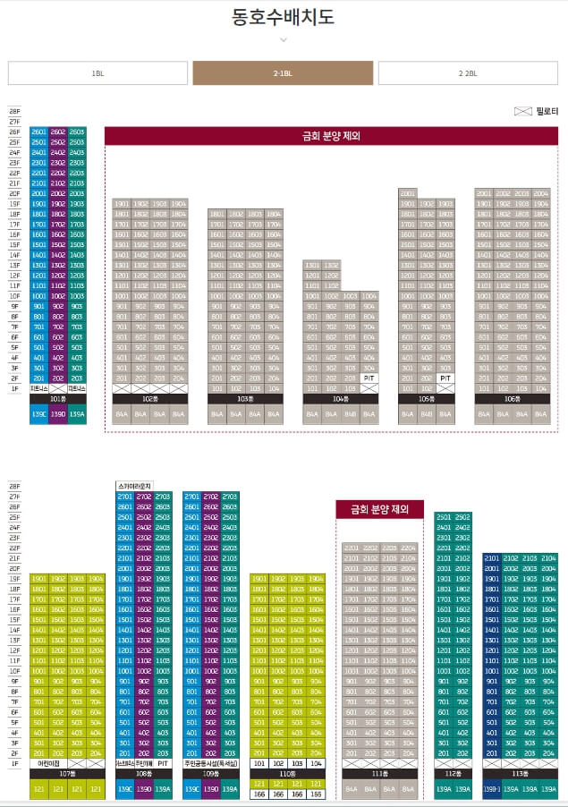2-1블록은 광주 서구 금호동 80번지 일원에 위치하고 있으며, 지하 3층에서 지상 28층까지 총 13개 동으로 구성되어 있습니다. 총 915세대로 이루어져 있으며, 주차대수는 1658대로 세대당 1.83대의 주차공간을 확보하고 있습니다.