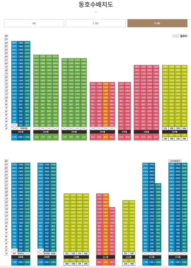 2-2블록은 광주 서구 풍암동 569번지 일원에 위치하고 있으며, 지하 2층에서 지상 28층까지 총 14개 동으로 구성되어 있습니다. 총 928세대로 이루어져 있으며, 주차대수는 1759대로 세대당 1.91대의 주차 공간을 확보하고 있습니다.