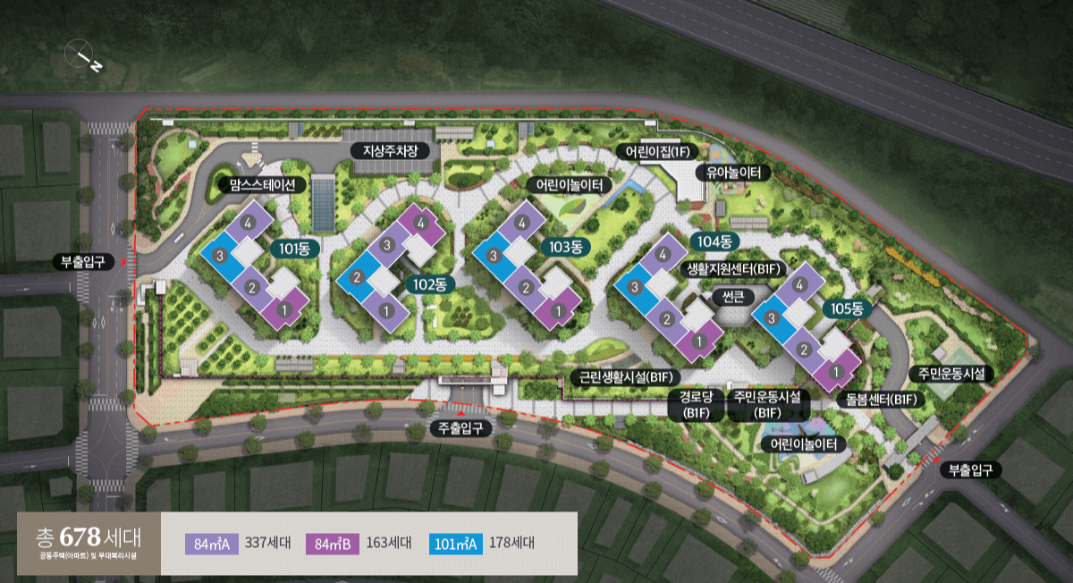 주민운동시설, 어린이 놀이터, 중앙광장, 테마산책로 등 다양한 시설을 통해 주민들은 자연과 함께 어우러진 활기찬 생활을 즐길 수 있습니다.