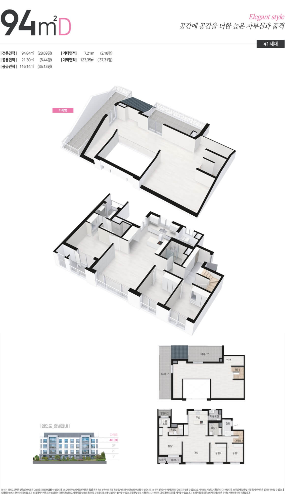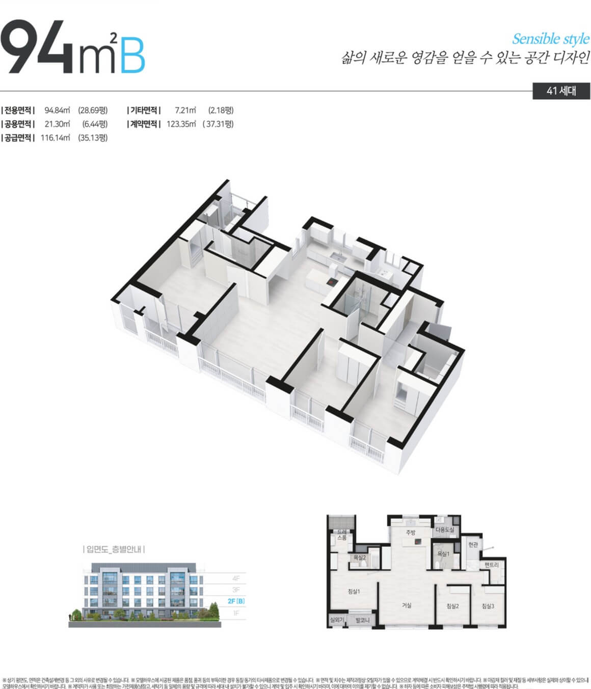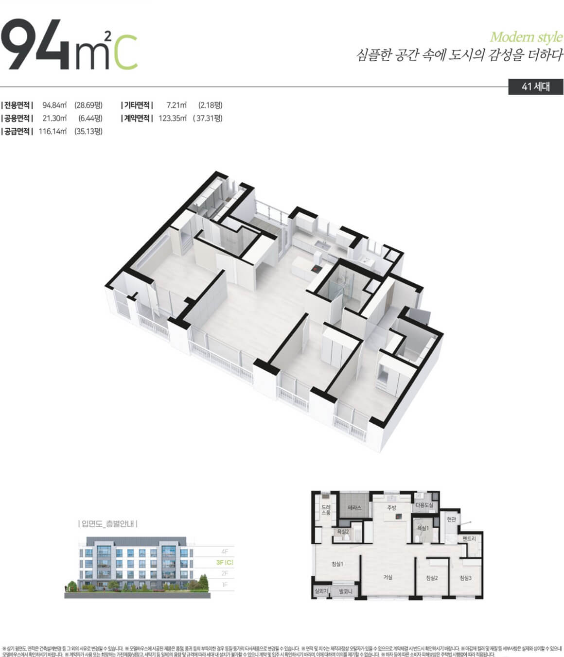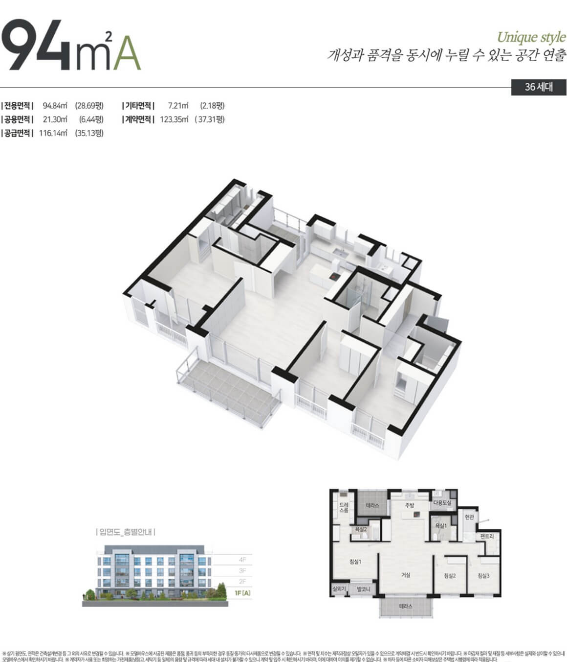 세대 면적: 공급면적 116.14㎡, 전용면적 94.84㎡ 서비스 면적을 포함하면 실사용 면적이 대폭 늘어납니다.