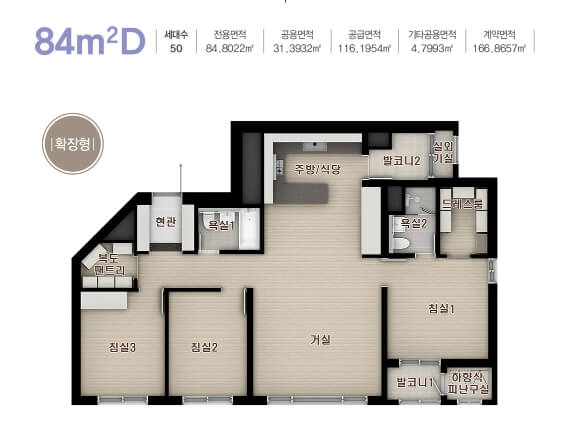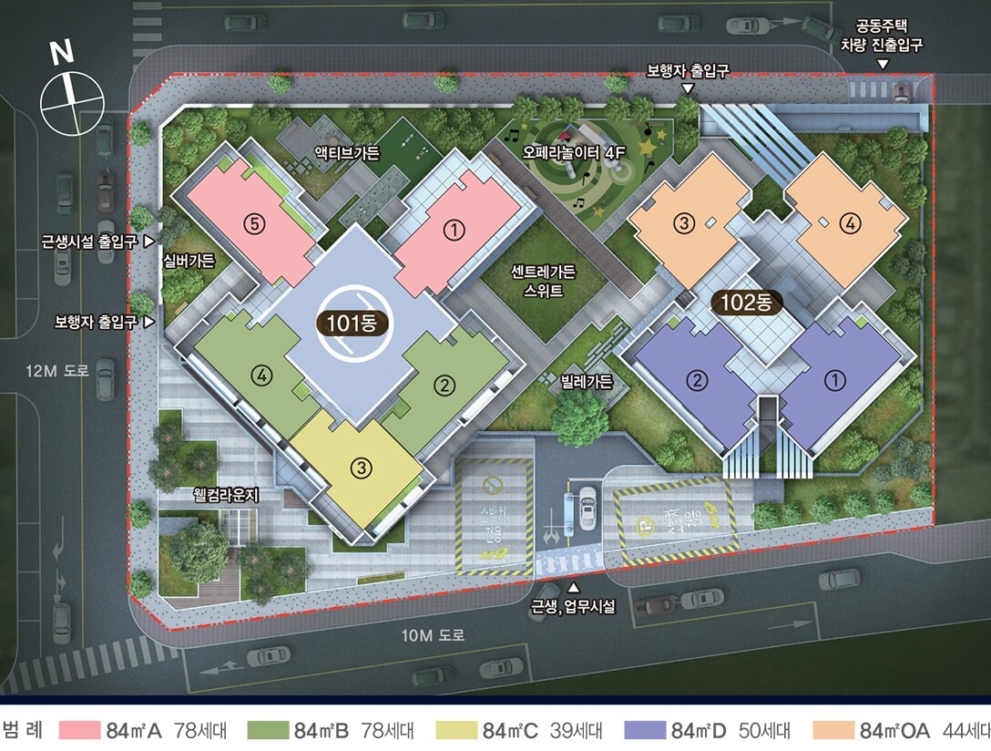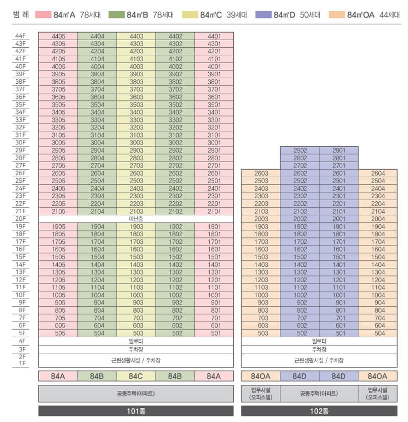 - 84D 타입: 복도 팬트리 포함 포베이 타입 50세대.