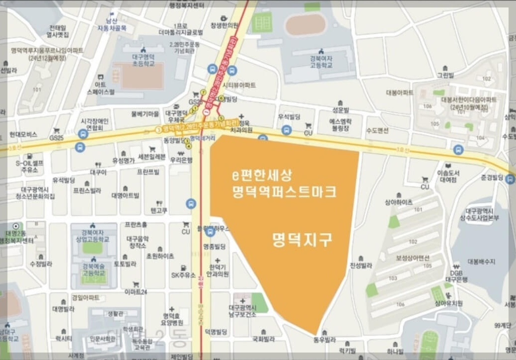 명덕역 이편한세상 퍼스트마크 아파트는 대구광역시 남구 대명동의 재개발 지역에 들어서는 대단지로, 총 1,758세대 규모로 구성되어 있습니다. 이 단지는 지하 2층부터 지상 35층에 이르는 17개 동으로 이루어져 있으며, 다양한 전용면적 옵션을 제공하여 다양한 가족 규모와 생활스타일에 맞춘 선택이 가능합니다. 명덕역 이편한세상 퍼스트마크 아파트는 1군 시공사의 신뢰도와 파워 입지 환경 조건으로 주변 단지들 중에서도 지역의 랜드마크로 자리매김할 것으로 기대됩니다. 다양한 전용면적 옵션, 우수한 교통환경, 풍부한 생활 인프라, 그리고 우수한 교육 환경을 갖춘 이 단지는 대구 부동산 시장에 활력을 불어넣을 것입니다. 실거주 목적뿐만 아니라 투자 목적으로도 큰 매력을 가진 이 단지는 많은 사람들의 기대를 받고 있습니다.