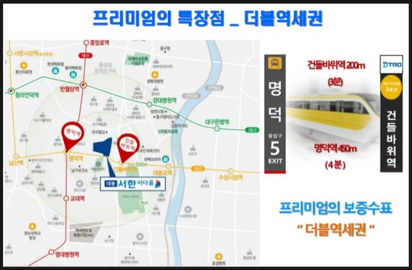 ▶명덕역, 건들바위역 더블역세권 - 1,3호선 명덕역과 3호선 건들바위역 사이 접근성을 높인 대로변 더블역세권 상가