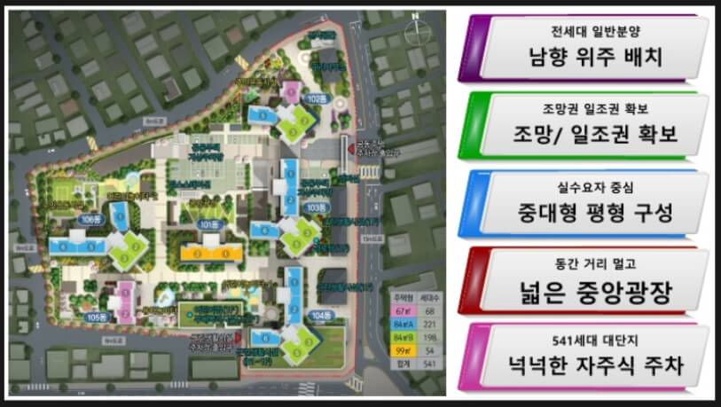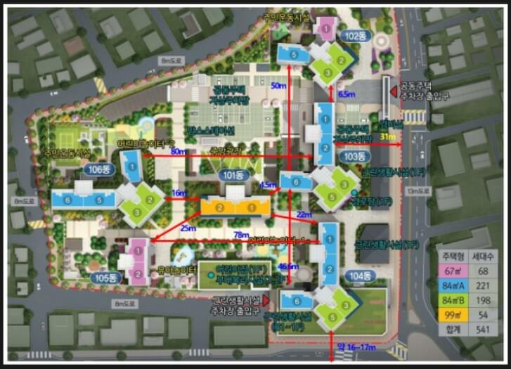 건축규모:지하 2층, 지상 28층/ 6개 동 아파트 541세대