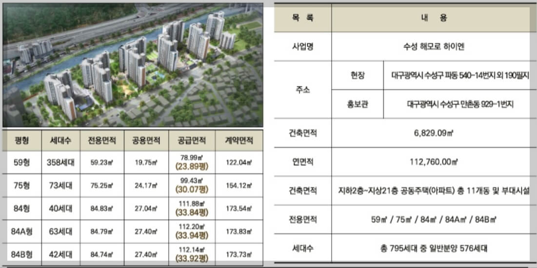 대구 수성구 파동 해모르 하이엔 아파트 특별 분양