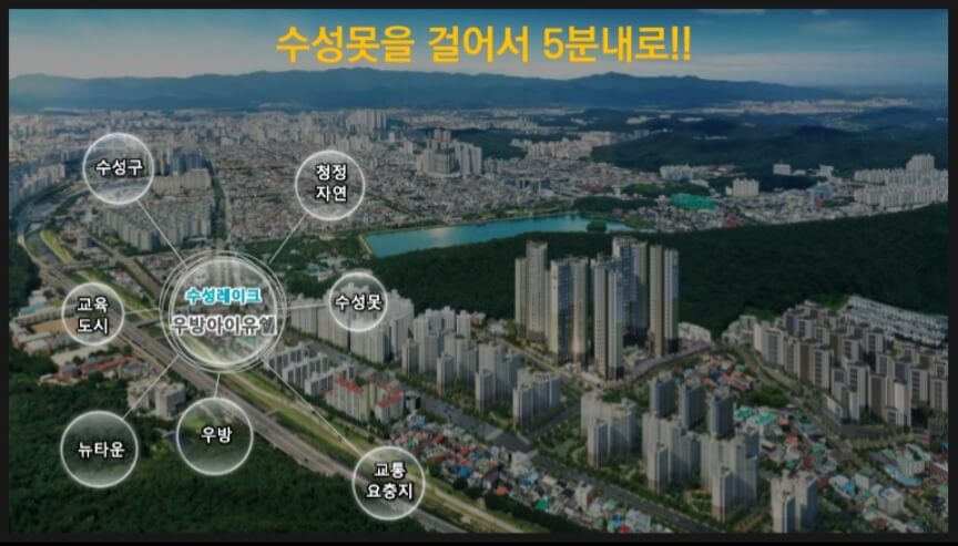 수성레이크 우방아이유쉘은 자연과 도시의 조화로운 생활환경과 투자 가치를 제공하는 단지로, 대구의 새로운 주거지로서 많은 주목을 받고 있습니다.