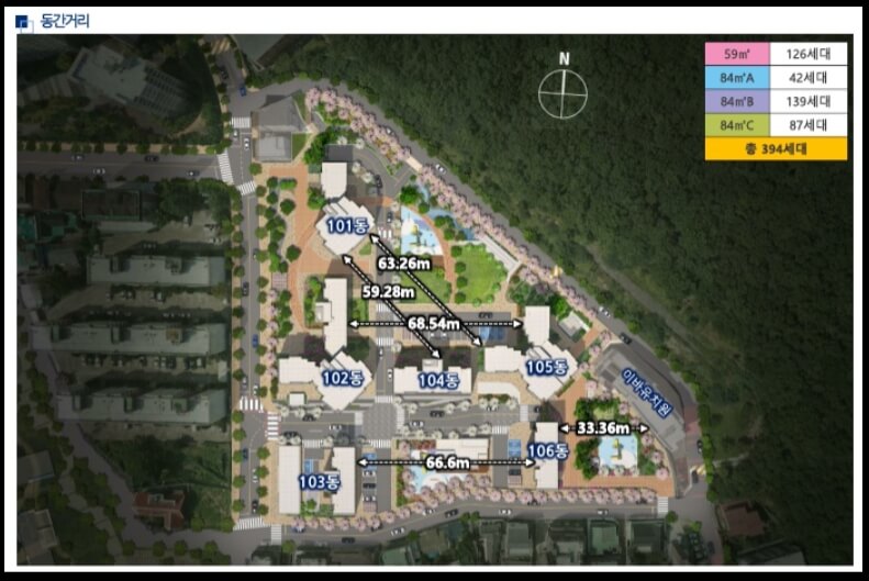 단지배치도/동 간 거리/동호수배치도/단지조경