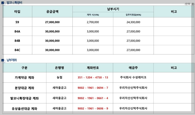 분양가/ 확장비