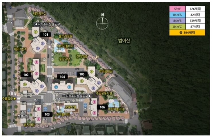 규모:지하 3층~지상 25층, 6개 동, 총 394세대