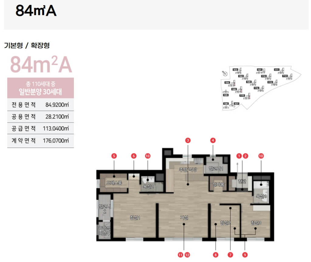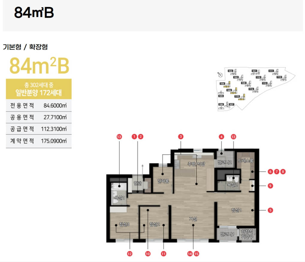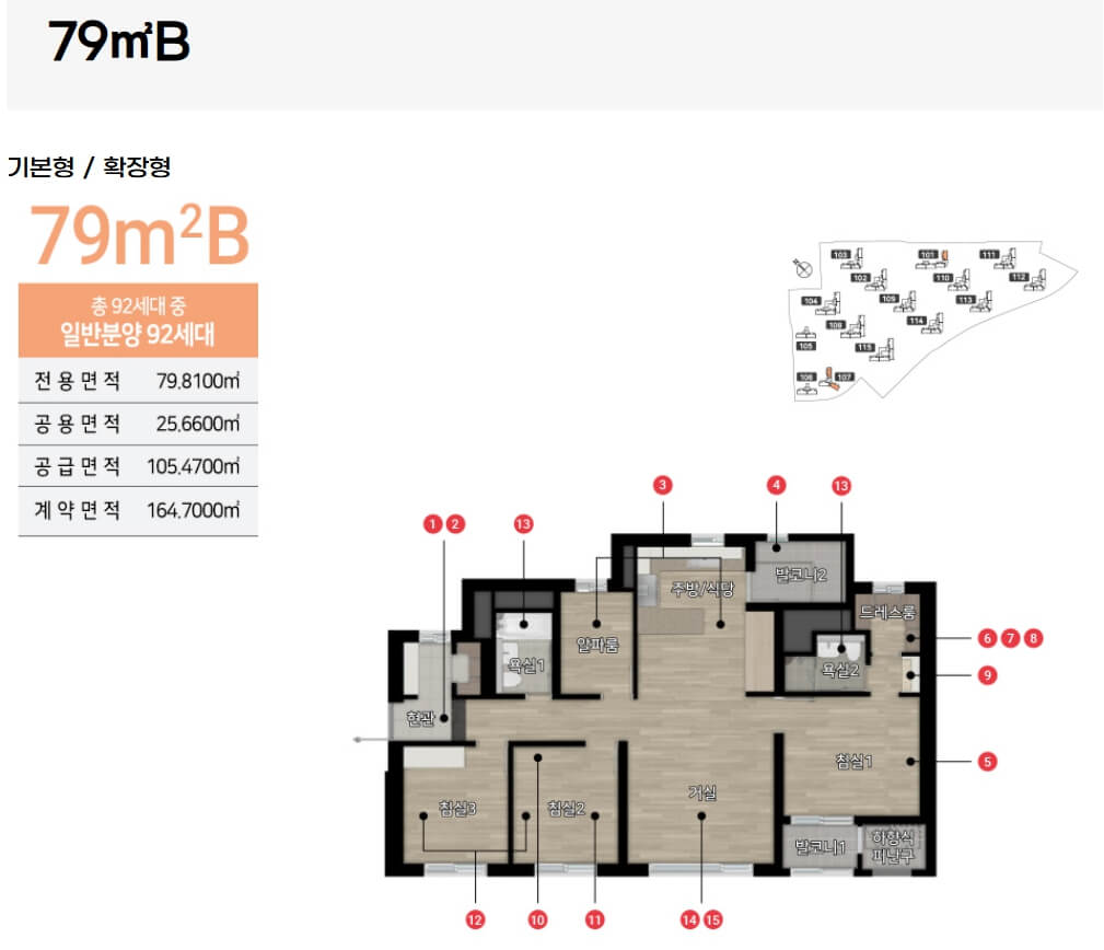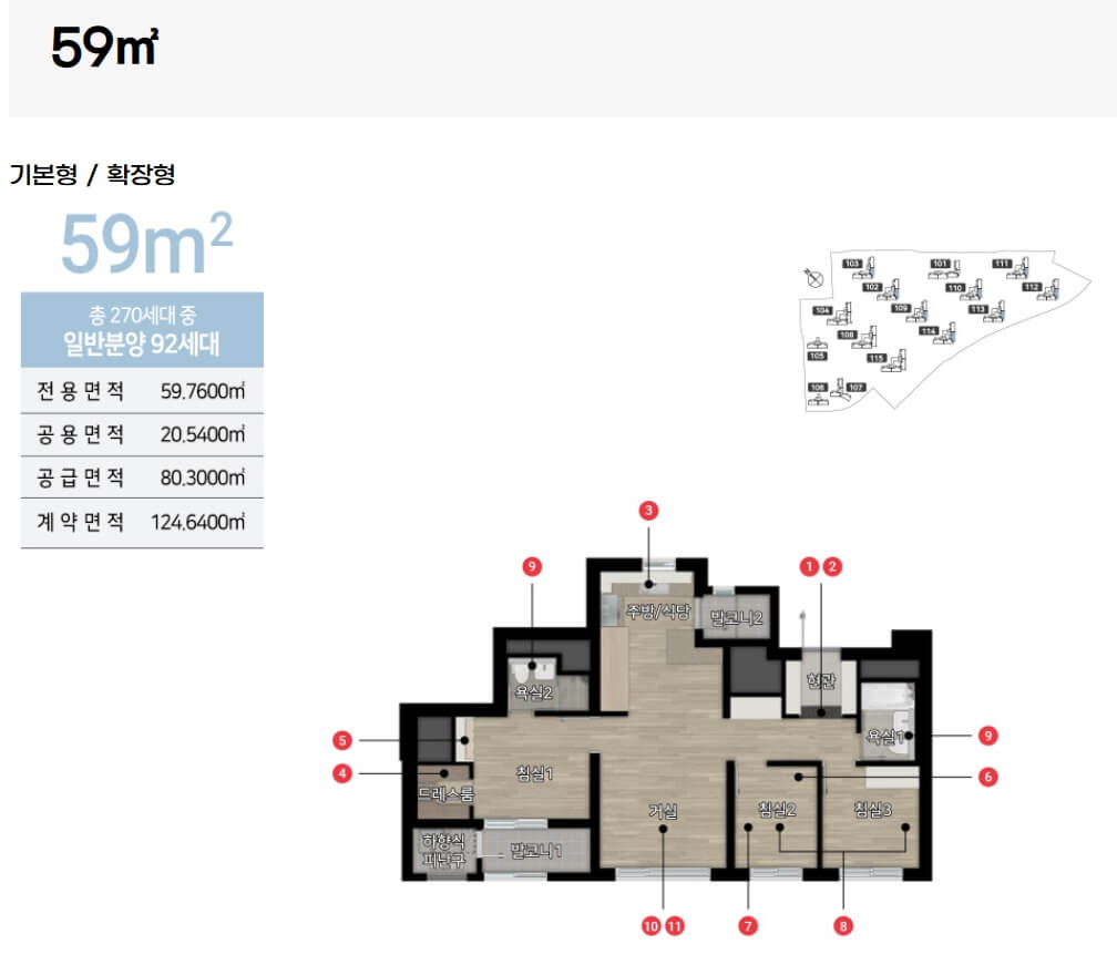 힐스테이트 가장 더퍼스트는 59㎡부터 84㎡까지의 다양한 소형평수를 공급합니다. 1~2인 가구가 늘어나는 추세에 따라, 소형평수의 희소성이 높습니다. 선착순으로 동과 호수를 지정하여 계약할 수 있으며, 청약통장을 사용하지 않아도 누구나 계약이 가능합니다. 계약금이 10%가 아닌 5%여서 초기 투자금이 적으며, 계약과 동시에 500만 원 일부 입금 후 30일 이내에 잔금을 치르면 됩니다.