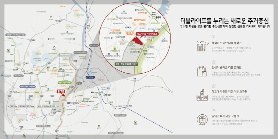 단지 내 커뮤니티 외에도 단지 앞에 복합커뮤니티 센터가 생깁니다. 대전 원도심권에 첫 공공문화시설로, 2026년 개설과 함께 집값 상승의 원동력이 될 것입니다.