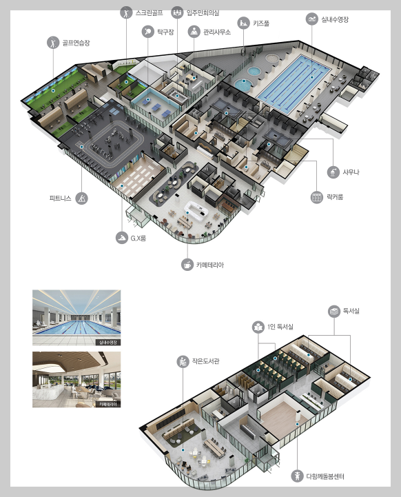 실내수영장 - 4계절 편리하게 이용 가능한 25m 수영장 및 키즈폴