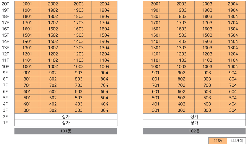 총 144세대로, 전 세대가 전용면적 116㎡(구 44평) 단일 타입으로 설계됐습니다.