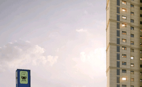 역 근처라 소음이 걱정될 수도 있는데, 이 단지는 메인도로와 적당한 거리를 두고 라임스톤으로 마감돼 외부 소음을 잘 차단합니다.