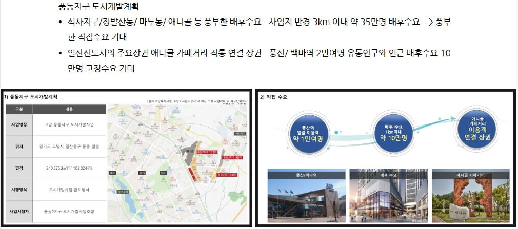 일산 풍동의 대표 랜드마크로 자리 잡을 더샵 엘로이는 대규모 주거단지와 단지 내 상가를 포함한 복합 개발 프로젝트로, 많은 관심을 받고 있습니다. 고급스러운 펜트하우스와 함께 단지 내 상가 분양 정보까지 알아보겠습니다. 더샵 엘로이 상가는 풍동 2 지구에 위치하며, 주변에 대규모 주거단지가 밀집되어 있어 안정적인 상권 형성을 기대할 수 있습니다. 특히, 더샵 데이엔뷰 아파트와 포스코 더샵 엘로이 단지에서만 4,000세대 이상의 고정 수요가 존재하며, 이들 거주민들의 생활 밀착형 상점 이용은 필수적입니다. 풍산역과 백마역을 이용하는 유동 인구와 주변 아파트 단지 입주민들이 더샵 엘로이 상가로 몰릴 가능성이 높아, 독점적인 상권이 형성될 전망입니다. 특히 항아리 상권으로, 경쟁 상가가 부족해 더욱 높은 수익을 기대할 수 있는 환경입니다.