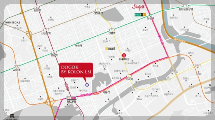 '도곡 by 코오롱 LSI'는 미래의 가치를 높이기 위한 다양한 개발 호재가 주변에서 기대되는 지역에 위치하고 있습니다. 특히 '서초로 지구단위계획 재정비안'에 따른 개발 계획과 경부고속도로 지하화, 국제교류복합지구 사업 등으로 미래 가치가 상승할 것으로 전망됩니다.
