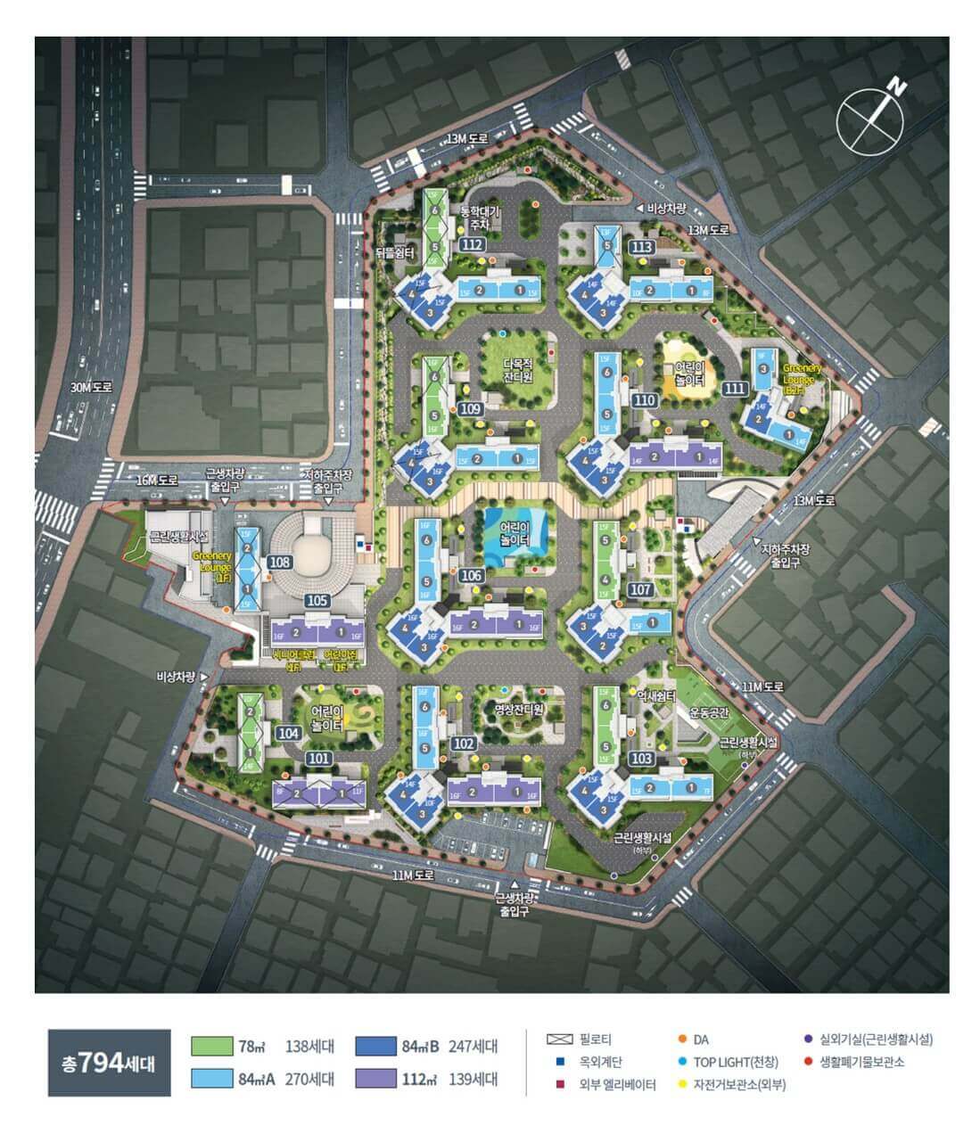 - 전용 78㎡, 84㎡, 112㎡ 중대형 평형