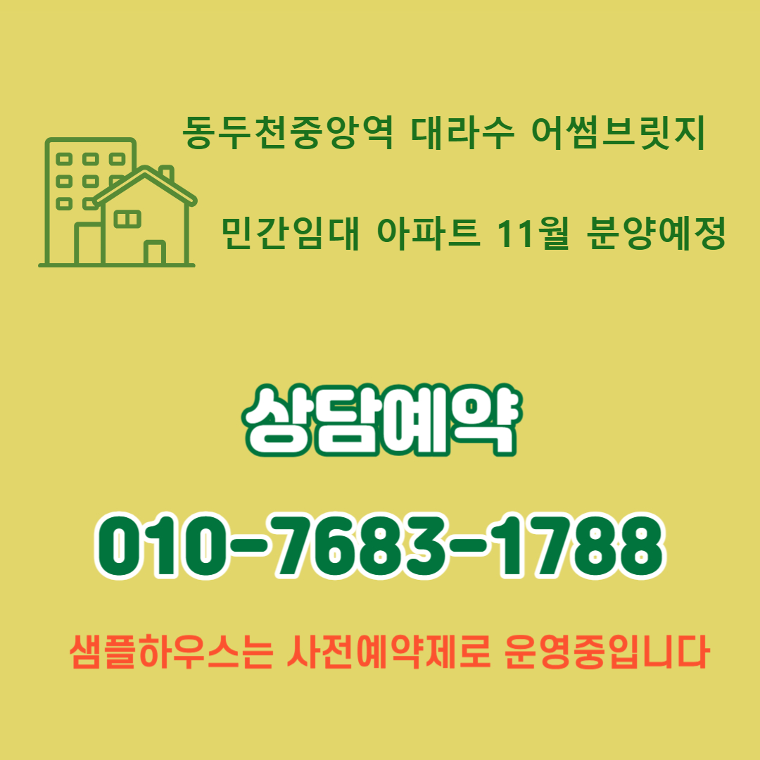 동두천 중앙역 대라수 어썸브릿지는 11월 하순에 모델하우스 오픈을 앞두고 있어, 관심 있는 분들은 서둘러 문의하시길 추천드립니다.