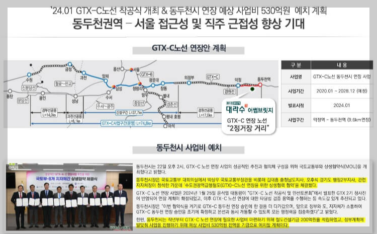 24.01 GTX-C 노선 착공식 개최 & 동두천시 연장 예상 사업비 530억 원 예치 계획 동두천권역