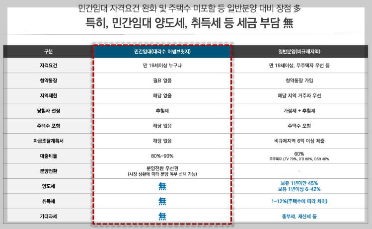 -민간임대 자격 요건 완화 및 주택수 미포함 등 일반분양 대비 장점 多