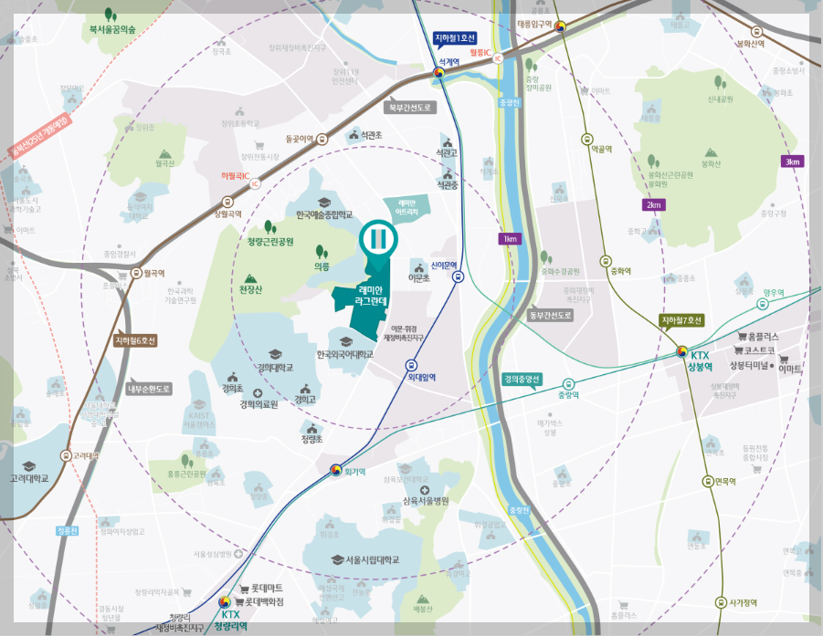 - 롯데백화점 청량리점, 코스트코 상봉점, 경희의료원, 삼육서울병원 등 편리한 생활인프라