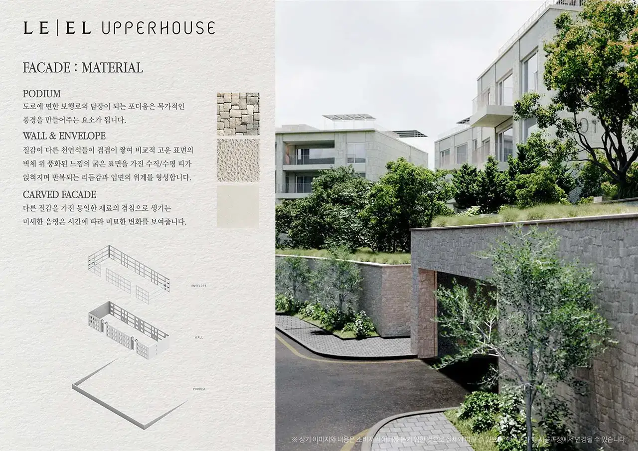 르엘 어퍼하우스는 숲과 조화를 이루며, 마을 내 4만여평의 숲과 단지 밖을 둘러싼 1만 여평의 숲이 보호합니다.