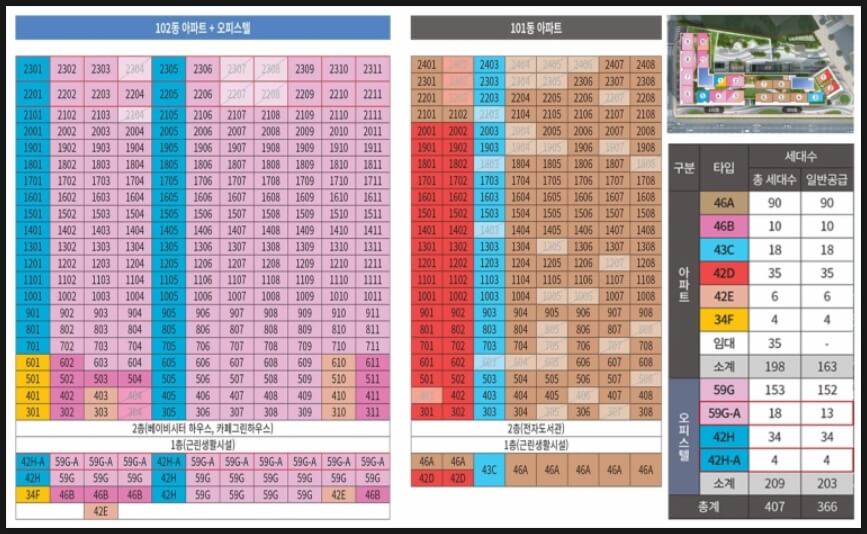 공급 세대: 총 407세대 (아파트 198세대, 오피스텔 209실)