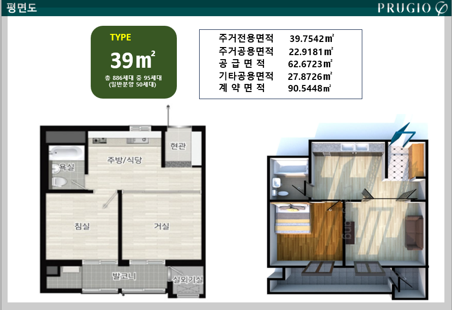 화명 푸르지오 헤리센트 아파트 중에서도 39㎡ 타입의 소형 평수 아파트가 현재 분양 중입니다. 이 아파트는 주거 공간을 협소하게 만들지 않으면서도 거실, 침실, 주방, 욕실 등을 잘 배치하여 1~2인 가구나 신혼부부에게 적합한 구조를 갖추고 있습니다. 또한, 일조량이 풍부하고 앞뒤 맞통풍이 가능하며, 주방 창을 통한 환기가 원활한 설계로 생활 편의성을 높였습니다.