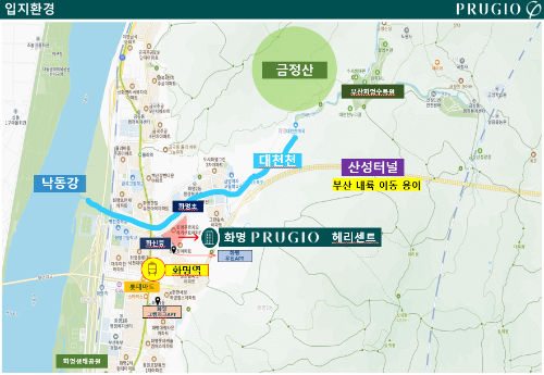 화명 푸르지오 헤리센트는 도시와 자연의 조화를 제공합니다. 주변에는 화명생태공원, 부산화명수목원, 대천천 등이 있어 쾌적한 자연환경을 즐길 수 있습니다. 단지 내 일부 세대에서는 낙동강과 금정산을 조망할 수 있으며, 금정산 순환산책로가 마련돼 있어 여가 생활을 즐길 수 있습니다.