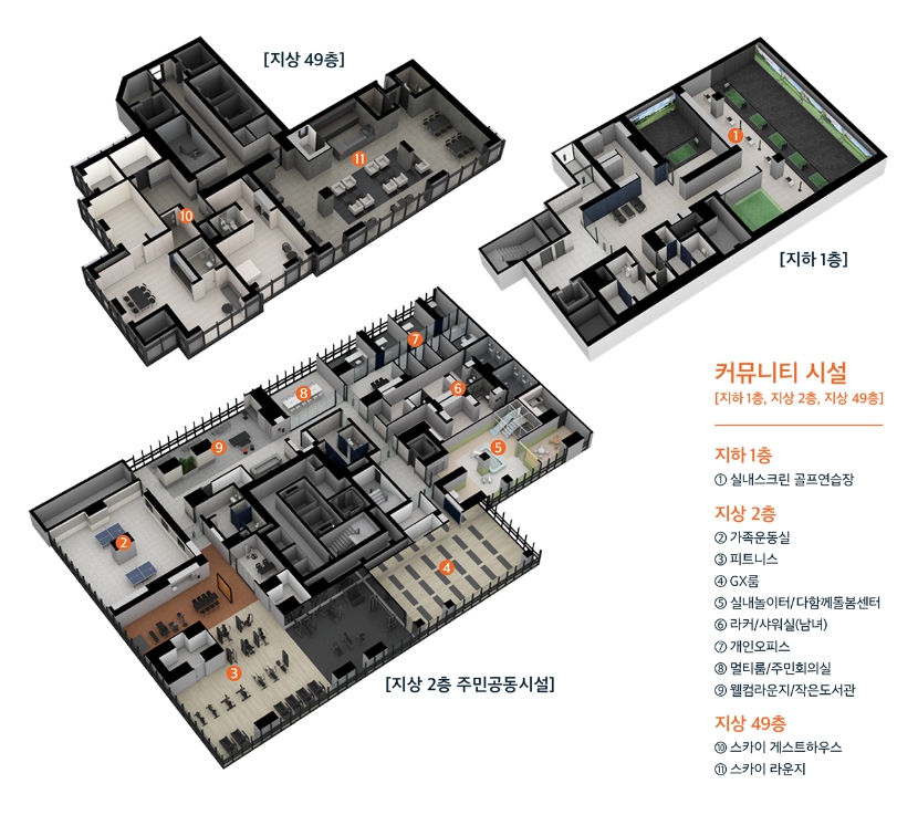 *스카이라운지, 스카이게스트하우스, 실내스크린골프연습장, 개인오피스 등 특화 커뮤니티