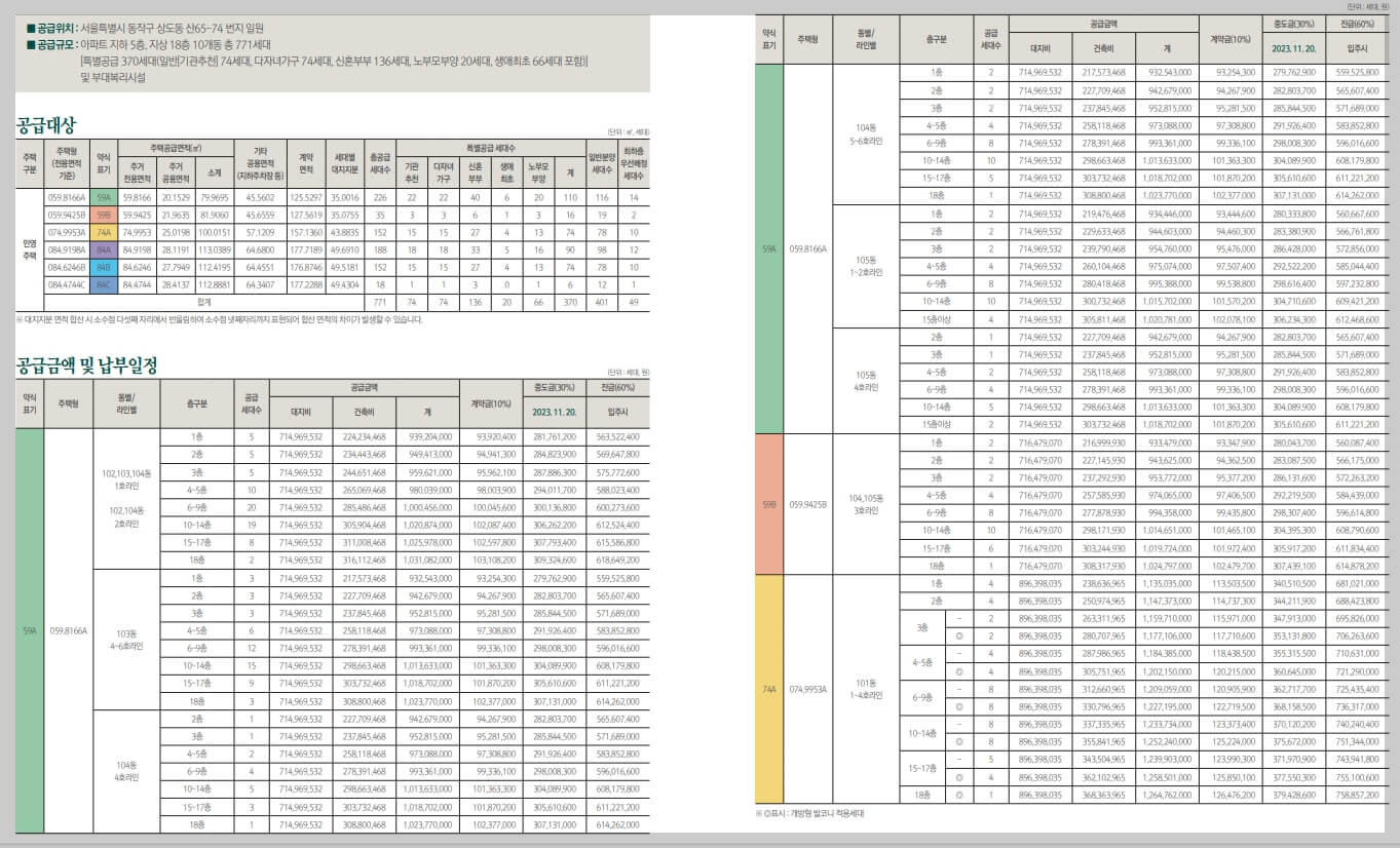 주택형: 59㎡A(226세대)/59㎡B(35세대)/74㎡A(152세대)/84㎡A(188세대)/84㎡B(152세대)/84㎡C(18세대)