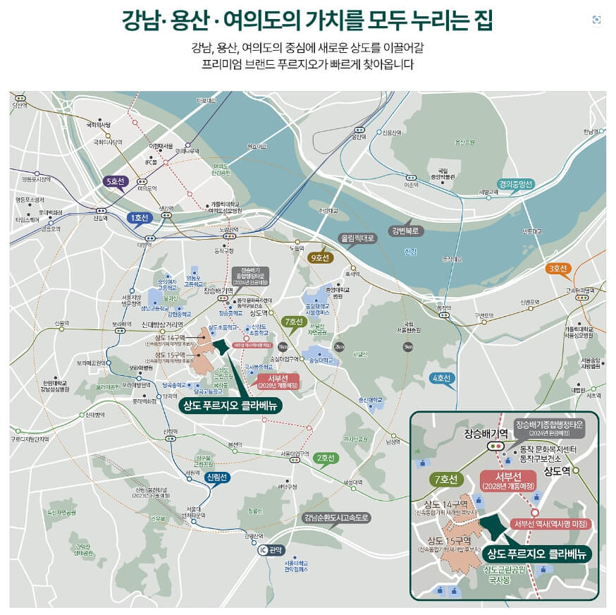 강남, 용산, 여의도 접근성: 강남, 용산, 여의도의 중심에 위치하여 각 지역의 가치를 모두 누릴 수 있습니다.