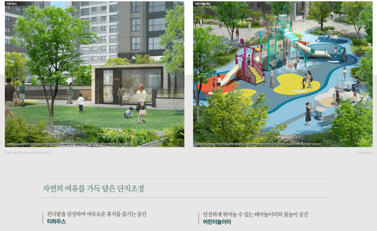 자연과 어우러진 생활: 티하우스와 어린이놀이터 등 다채로운 시설을 통해 자연과 함께 즐거운 생활을 제공합니다.