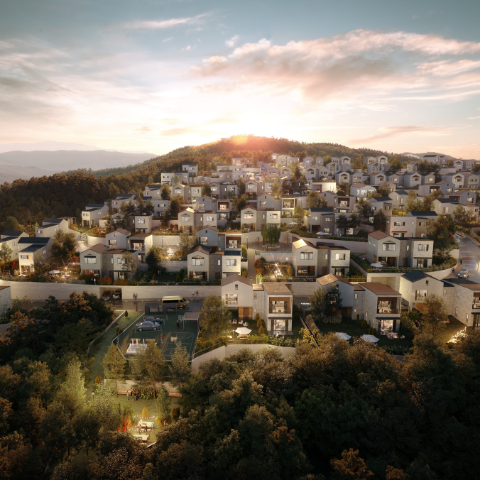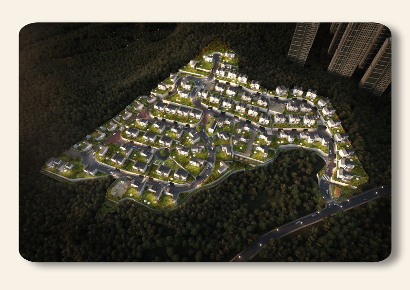 인프라의 중심, 세종 더그르노블 전세대 남향배치, 유일 경사로 단독주택단지 왼쪽으로 세종의 멋진 도시뷰, 오른쪽으로는 국립공원 계룡산의 자연뷰가 펼쳐집니다. 놀은 층고의 가족실과 다락, 프라이빗하고 넉넉한 앞마당과 테라스는 더 그르노블의 자랑이며 시야 가림 없는 멋진 전망를 제공합니다.
