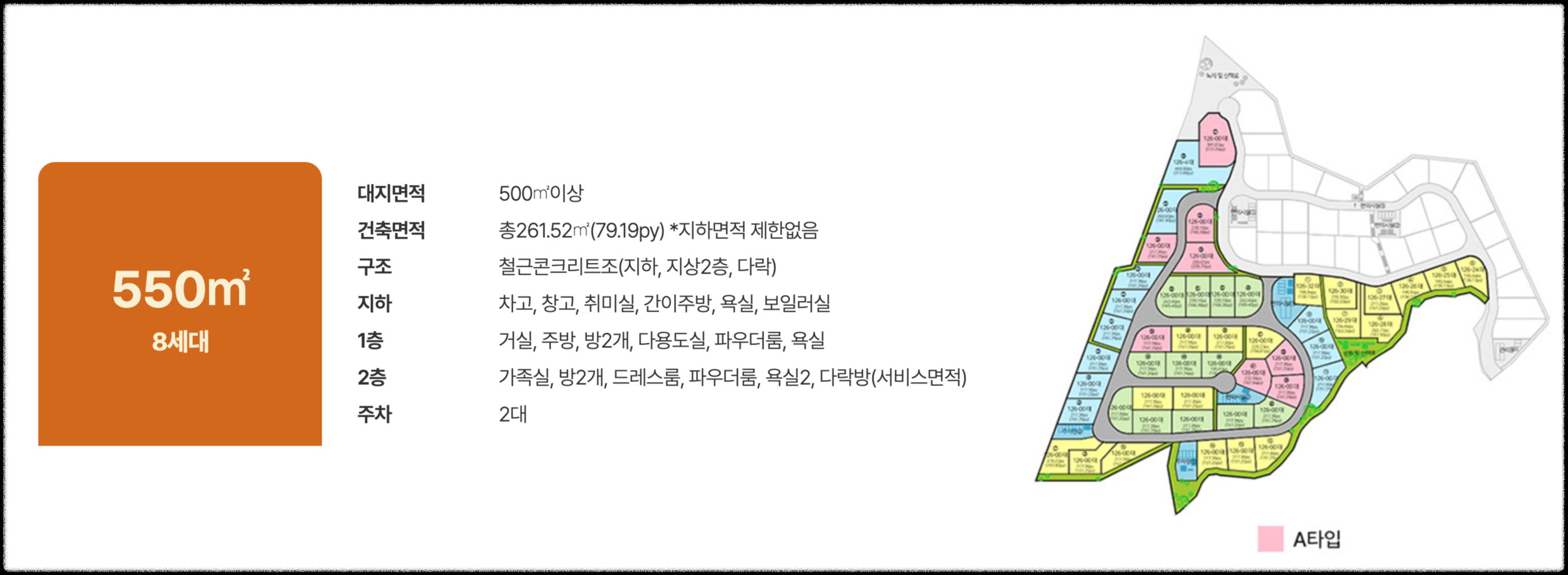 건축면적:총 261.52(79.19평)*지하면적 제한없음
