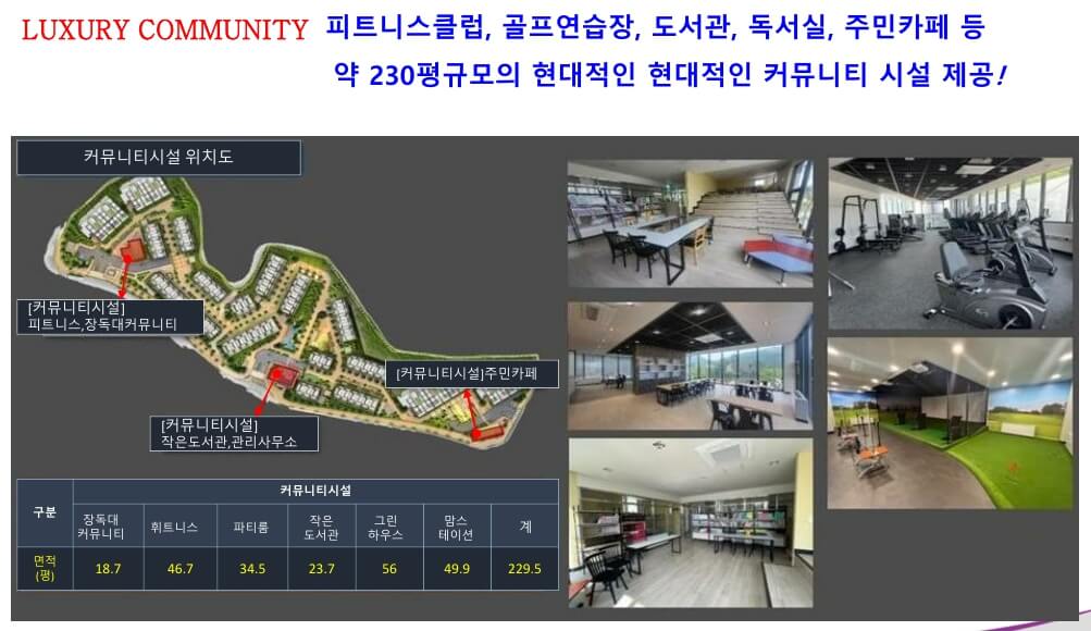 또한, 단지 내부에는 북카페, 피트니스센터, 실내 골프연습장, 독서실 등 다양한 커뮤니티 시설이 마련되어 있어, 외부로 나가지 않아도 여가와 자기 계발을 동시에 누릴 수 있습니다.