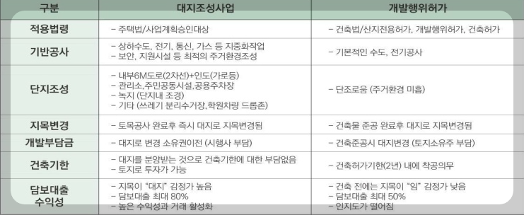 대지조성사업은 주택법에 의해 시행되는 사업으로 주택단지를 조성하기 위하여 시행하는 사업을 말한다