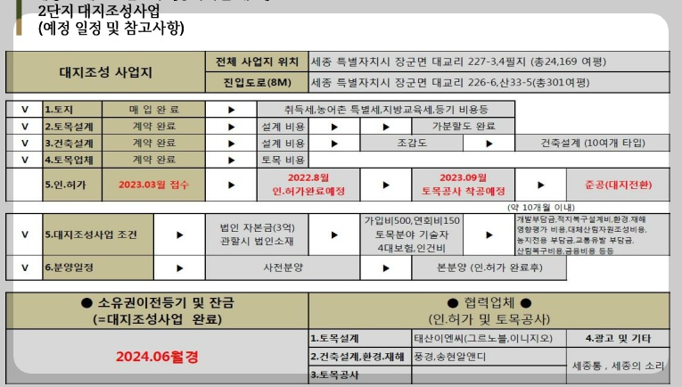 세종포레스트힐 3차 청와마을 대교 1단지.2단지.3단지 대지조성사업(예정 일정 및 참고사항)