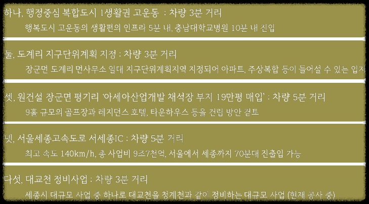 - 행복도시 고운동의 생활편의 인프라 5분내, 충남대학병원 10분내 진입