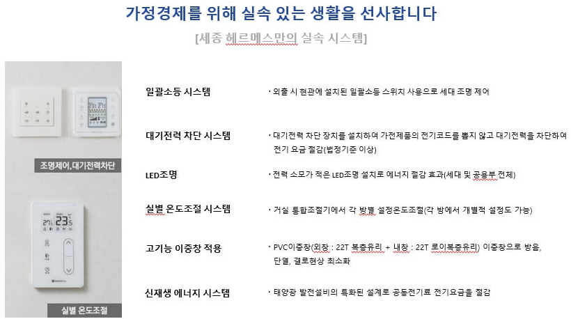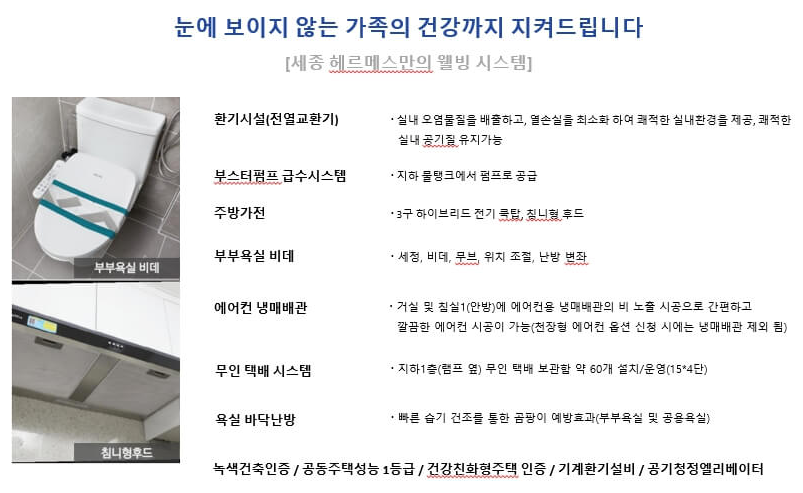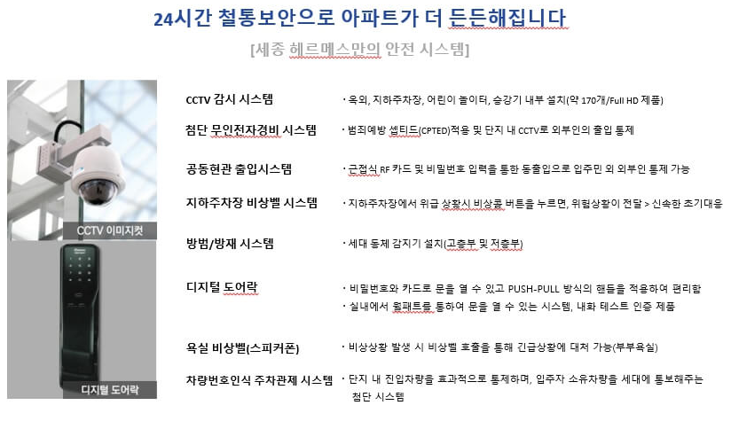 세종 헤르메스는 첨단 디지털 기술을 활용하여 스마트 홈 시스템을 도입했습니다. 전기차 충전 시설, 공기 청정 엘리베이터, 차량 번호 인식형 주차 관제 시스템, 대기 전력 차단 시스템 등이 구비되어 있어 주민들에게 안전하고 편리한 생활을 제공할 것입니다.