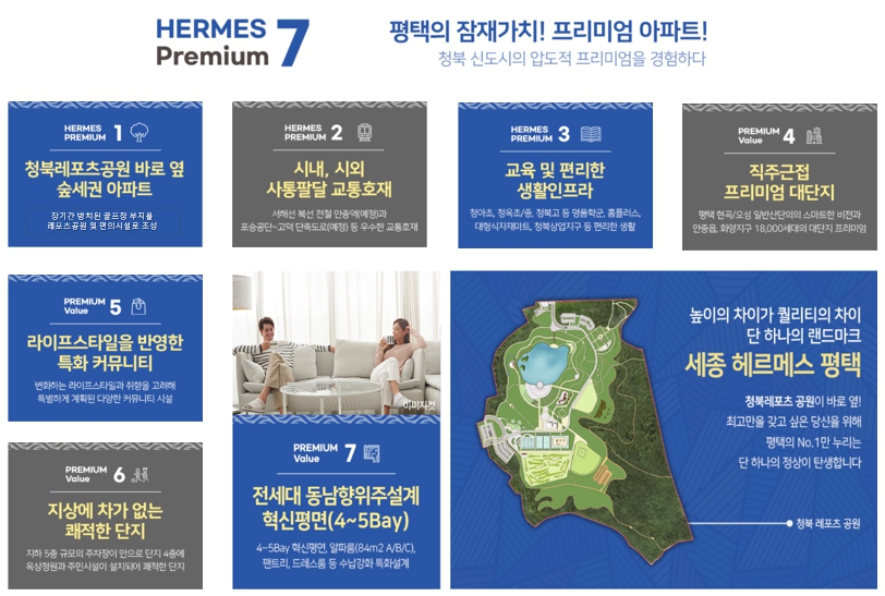 소비자들이 선호하는 다양한 평수의 중소형, 대형, 펜트하우스 등 다양한 종류의 아파트 평수 제공 예정 프리미엄 생활과 함께하는 세종 헤르메스